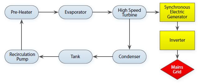 - Recirculation pump to pump the fluid back in the ORC loop;