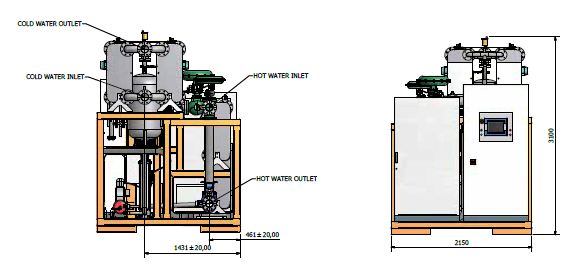Please keep in mind that the skid requires at least 1.5 meters of free space on all sides for easy maintenance access.