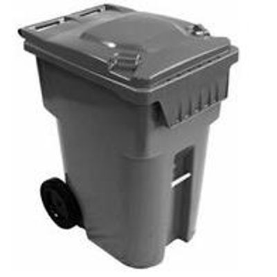 Strong and durable cart, UV stabilized against the long term effects of the sun. 12" snap-on wheels with a solid steel axle, yellow zinc plated against corrosion. The unibody design requires no bolts or holes that could potentially leak. Designed for maximum wind stability. Advanced lid hinge design offers a tight seal that keeps pests and weather out. Meets ANSI Z245.30 and Z245.60.