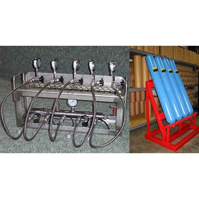 When an application requires more auxiliary fluid volume than can be handled by a single accumulator, manifolds and bottle racks are often an efficient solution. Several accumulators can be mounted together in a parallel system that provides the necessary volume for BOP closing systems, emergency power, and other fluid storage applications.