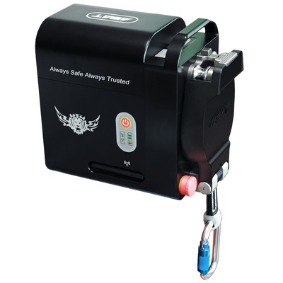 Mini power ascender, gross weight of 10.5kg, which is compacted and can be stored in a backpack. Maximum load of 180kg, stepless speed regulation, 150m remote control. Swappable battery. Running in any direction, including vertically, horizontally and in high angles.. Dimensions: 27cm*16cm*24cm.