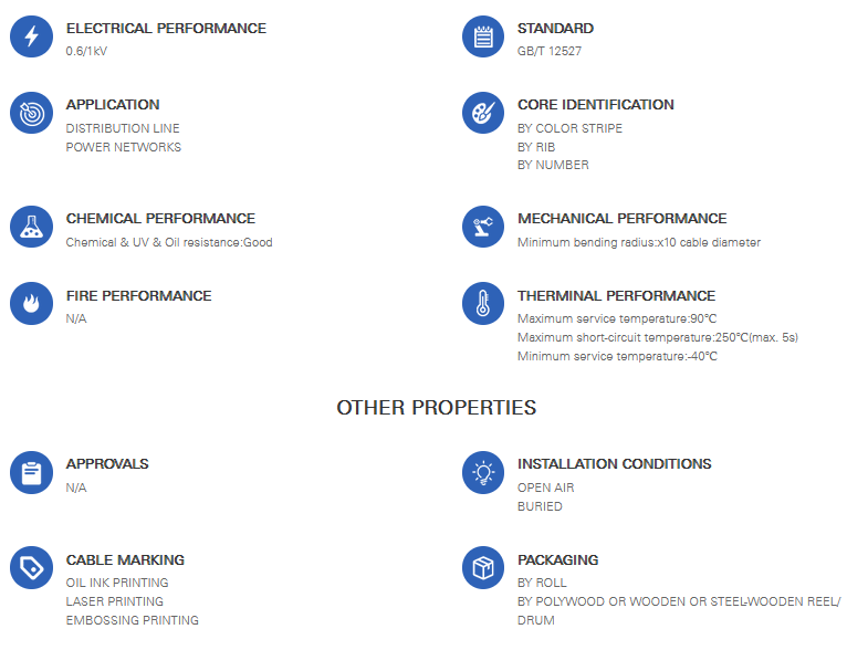 The aerial bundled cables are used for overhead distribution line and electrical installations with alternating power networks with nominal voltage UO/U 0.6/1 kV or in direct power networks with maximum voltage according to land 0.9kV.