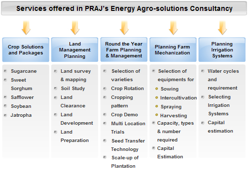 Under the aegis of its `Energy Crops to Energy` mission, Praj offers Agro Energy Consultancy with an aim to providing sustainable solutions to clients interested in cultivating their own feedstock for Biofuels.