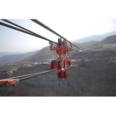 Agudio cable cranes are designed with a double track rope having reduced diameter, easier and faster to be installed and more stable during operation, also in adverse climate conditions. These systems are fitted with special slack carriers, an Agudio patented solution, hooked onto the track ropes as a support to the operating ropes along the line and providing fast traverse carriage speed in complete safe and smooth operating conditions, with a low roller and rope wear which would require costly system downtime for repairing or maintenance operations.