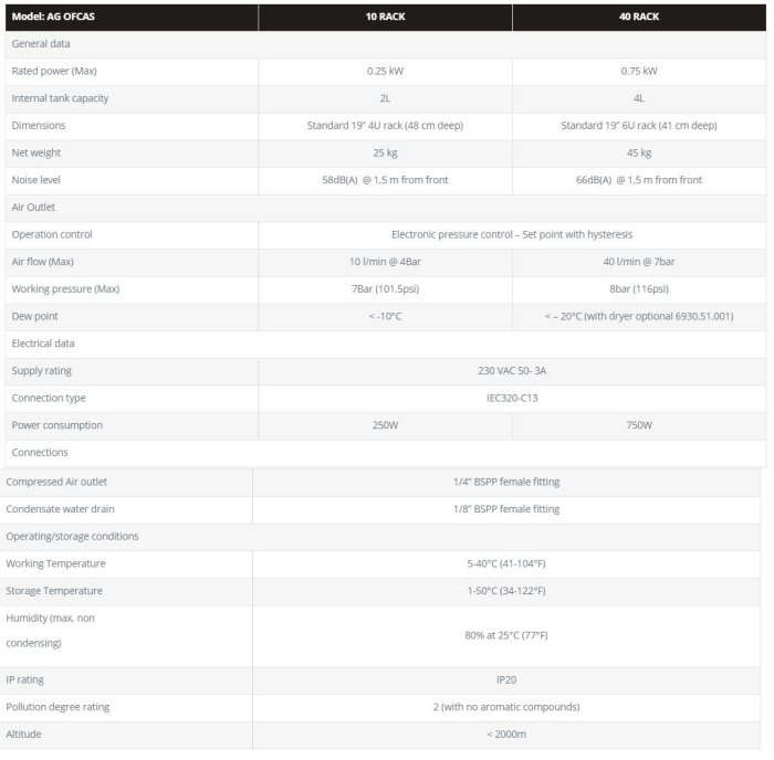 The high quality of the materials combined with cutting-edge technology of the compressor unit, ensure reliability, professionalism and economy and allows continuous use, unthinkable in traditional direct-drive oil-free compressors. The AirGen OFCAS RACK is the ideal compressor to supply all Zero Air generators ZA FID and ZA Total or the high purity Nitrogen generator NG EOLO.