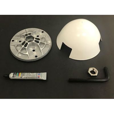 INSTRUCTIONS -When storing your turbine, remove the Blade/Hub/Nose Cone Assembly and store in safe location to not damage blade set. When The Shaft and Face is exposed, apply a liberal amount of synthetic grease to the gap around Shaft and Bearing on the Face of the turbine (this should be performed as a regular maintenance event every 12 months). Next, attach Hub and Jam Nut and tighten using 5/16” hex key (hand tighten). Attach the Nose Cone with position of the Nose Cone Blade opening not lined up with Blade bolt holes to avoid water intrusion through holes in the Hub.