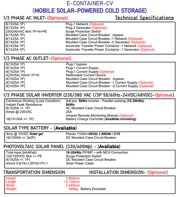 Akis - Model E-Container-CV -Mobile Solar-Powered Cold Storage Container