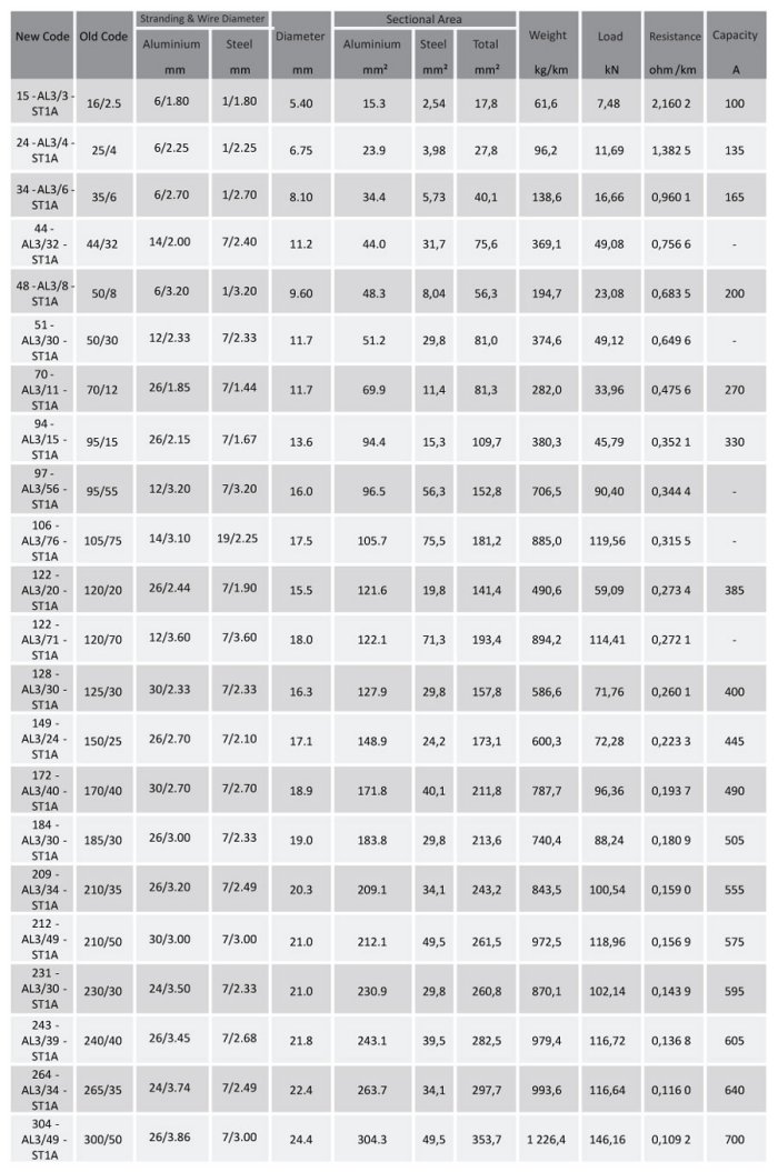 4S - Model AACSR | French Sizes -Aluminum Alloy Conductors Steel Reinforced