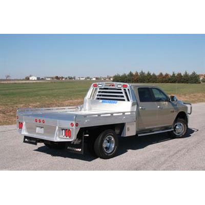 3 Year Warranty. High Strength Aluminum Extruded Floor. Heavy Duty Tread Brite tailboard. 3" Aluminum I-beam crossmembers with approximate 16" spacing. Heavy Duty 6" tall extruded rubrail. Recessed stainless steel flip up tie downs. Heavy Duty adjustable height headache rack with square tube louvers. 4"x2" tube steel long sills, adjustable to 34", 38", 42". Fold down sides with slam latch. Recesses aluminum castings for taillights and tag. Tapered rear with step. Tapered front on 96" wide dual wheel beds. Corrosion resistant. LED lights (6) stop, turn & tail and (4) back-up. LED clearance & side marker lights. Sealed wiring harness with plug-in connections. Lights and harness installed. 30K Gooseneck ball plate with flush mount cover (2 5/16" 30K ball included). 18K Receiver Hitch with 2 1/2" tube. 2" Adapter Included. Aluminum fuel door.