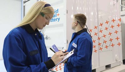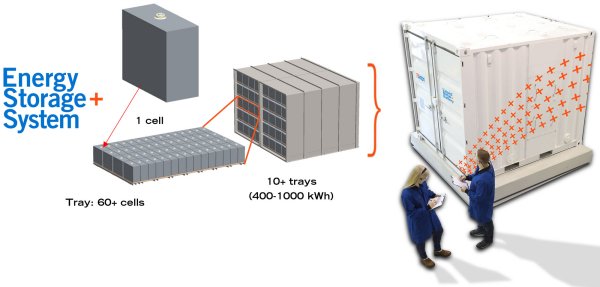 Once delivered on-site, heaters within the system bring the cells up to their operating temperature, which activates them and allows them to start storing or returning electrical energy.