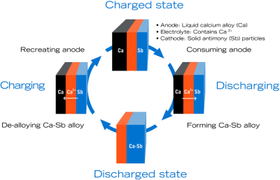 The active materials in Ambri’s cells reversibly alloy and de-alloy while charging and discharging. The electrolyte is thermodynamically stable with the electrodes, avoiding unwanted side reactions such as film-formation that can degrade the performance of other cell chemistries. Furthermore, the negative electrode is fully consumed when discharged, and then is reformed on every cycle, resulting in a highly repeatable process with no memory effect.
