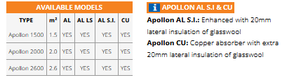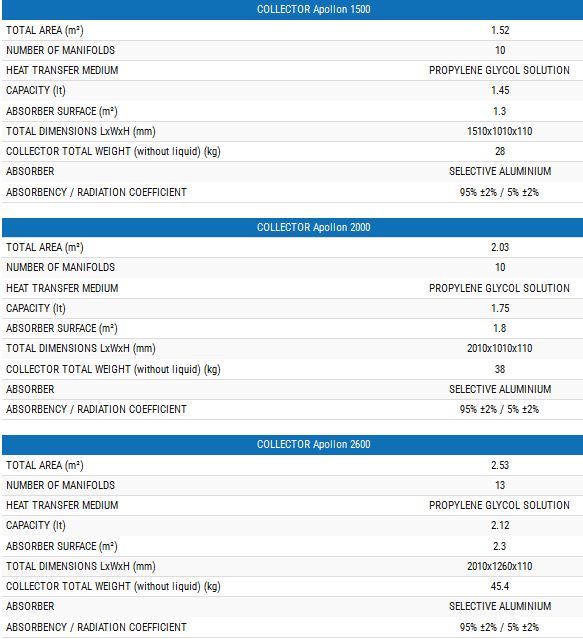 The Apollon collector with one piece external seamless trough and copper water frame is the ideal choice that combines reliability with efficiency. The selective absorber - made of selective aluminium sheet with a special titan coating formed in vacuum - achieves high levels of absorbency 95% (±2%) and at the same time low radiation 5% (±2%) making Apollon collector a prime choice.