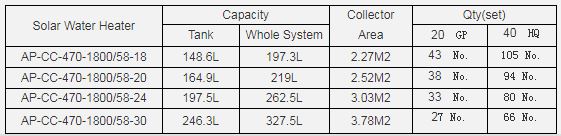 Tech Data: Inner water tank: Stainless Steel, SUS304-2B, SS316L; Thickness, 0.31-0.51MM. Outer water tank: Color Steel or Stainless steel; Thickness, 0.40MM. Insulation layer: Polyurethane foam; Thickness, 30-60MM. Frame: Galvanized Steel; Aluminum Alloy; Stainless Steel; Angle, As your requirement. Vacuum tubes: ALN/AIN-SS/CU layer; 58-1800. Copper Coil: 15M(18Tubes) 20M(24Tubes), 25M(30tubes);30M(36tubes). Assistant Tank heating element, Mg Rod, Reflector and Controller can be provided.