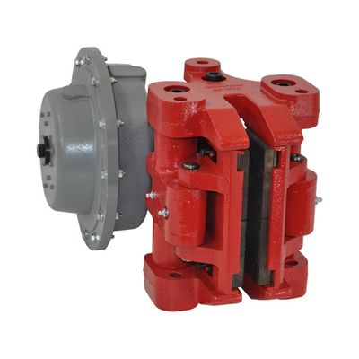 The A400 is an arm style caliper brake designed to accept a large selection of Hilliard thrusters. These thrusters include spring applied hydraulic released, spring applied pneumatic released, hydraulic applied spring released, and pneumatic applied spring released. The 400 requires a minimum disc diameter of 24" and is off ered in 2 sizes to accommodate a 1" and 1-1/2" thick disc. The design of the caliper allows the user to quickly convert between right and left handed designs eliminating the need for multiple part numbers.