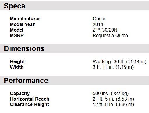 - Proportional lift and drive controls allow precise boom positioning and smooth drive performance