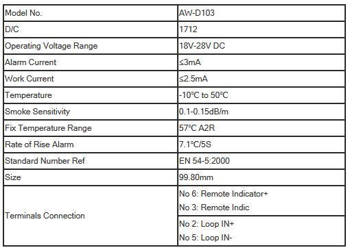 Asenware - Model AW-D103 -Addressable Heat and Smoke Detector Combination Detector