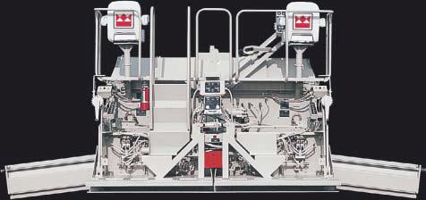 Two hand-held remote control units with vandal covers, functions include auger override/stop, strike-offs in/out, slope up/down, power-pull point control and automatics auto/setup/man Feed control panels located at left and right side of screed Power crown, burner, horn, vibratory frequency adjustment and optional slope controller located on panels at center of screed