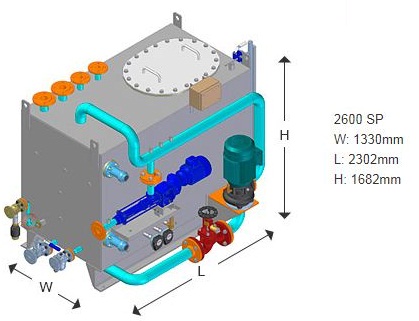 The 1200 SL P is a large incinerator for burning solid and liquid waste, suitable for bigger merchant vessels, and where no waste sluice is required.