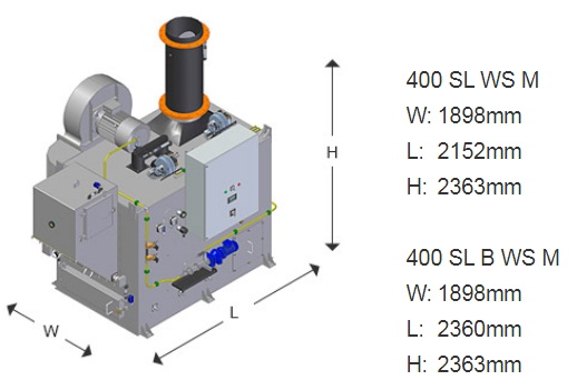 The 400 SL (B) WS M is the second most compact solution for burning solid and liquid waste with a high water content, (above 50%), available with a 30L or 70L (waste bag) sluice size, and suitable for offshore supply vessels and small merchant vessels.