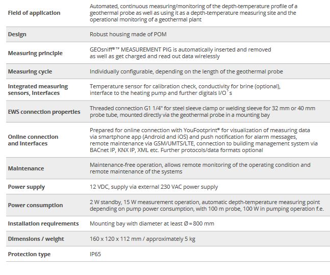 Automatic insertion and removal of a GEOsniff TP MEASUREMENT PIG for reliable continuous operation of an geothermal probe as well as a long-term monitoring of the depth-temperature profiles in small and large geothermal plants.