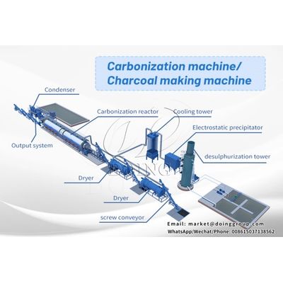 The design concept of modern biomass pyrolysis equipment emphasizes functional integration and space optimization. For example, Henan DOING's biomass pyrolysis equipment system integrates the entire pyrolysis process—feeding, carbonization, cooling, emission, and waste gas treatment—into a compact, continuous flow system. Operation is largely automated, including feeding, parameter adjustment, and product collection. It also incorporates flue gas treatment and combustible gas recovery functions, balancing environmental requirements with operational economics.