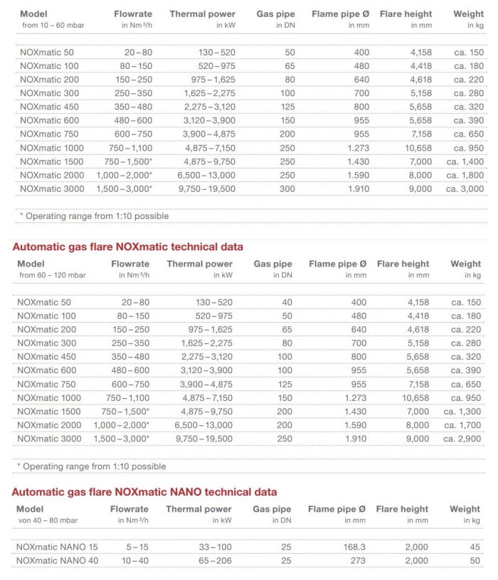 NOXmatic flares can be delivered worldwide with a capacity from 100kW to 20MW.