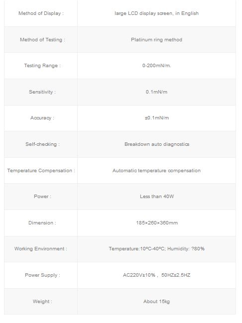 AT-D Automatic Surface Tension Meter is designed and made as per the National Standard of People`s Republic of China GB/T6541-86 (1991) `Test Methods for Interfacial Tension of Oil against Water by the Ring Method*.