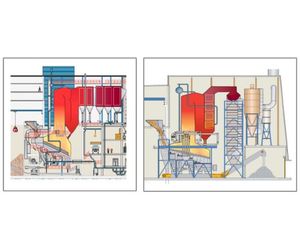 The convective heating surfaces in a vertical boiler are usually cleaned by soot blowers, which minimise the risk of blocking the tube bundles. Because the vertical heating surfaces use a common hopper for ash extraction, performance per steel ton is optimised. To avoid soot blower-induced erosion, superheater and evaporator tubes are protected by stainless steel tube shells. The arrangement of the tubes means that the tube bundles don’t need separate drains - a major advantage in terms of the time required for replacing the bundles.