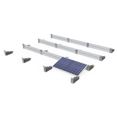 The Ballast flat roof mounting system, model CR06-1, is designed for ease of installation with minimal components, including a Z bracket, mid clamp, and end clamp. Composed of steel, this system also offers customizable wind protection. It is compatible with all panel sizes and orientations, making it an ideal choice for commercial projects due to its cost-effectiveness. The system accommodates flat concrete rooftops, made from HDG steel and anodized aluminum. It employs a ballasted foundation with tilt angles of 5°, 10°, and 15° and supports custom panel arrays. Wind loads up to 45m/s and snow loads up to 1.4 KN/M2 can be managed. It adheres to standards like ASCE7-10, EN 1990:2002/A1:2005 Eurocode, and AS 1170, ensuring durability with a 15-year warranty.