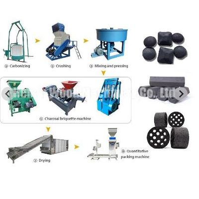 The barbecue charcoal production line is an automated barbecue briquettes processing line independently designed by the WOOD factory. The BBQ charcoal briquette project mainly includes a carbonization furnace, a carbon crusher, screw conveyors, a carbon powder crushing mixer, a charcoal briquette machine or a charcoal ball press machine, a briquette dryer, and a barbecue charcoal packaging machine.