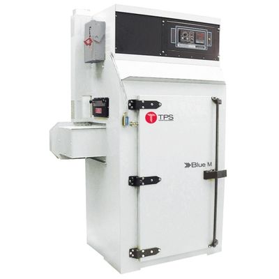 Blue M Class A Batch Ovens are mechanical convection electric chambers that include safety features recommended in NFPA Bulletin 86 as standard. The design of the chamber concedes that the element temperature may be well above the auto-ignition point of some flammable materials, but this is mitigated by maintaining a non-explosive mixture through the use of higher than normal exhaust rates. Increased heating element kW compensates for this exhaust factor.