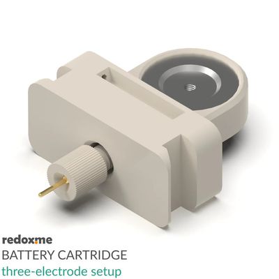 The battery cartridge elements are constructed with materials that are inert to the sample (Stainless steel 316L/317L and PEEK). It well fits aqueous (FKM and EPDM O-Rings) and organic solvent (FFKM O-Rings) electrolyte requirements. Good electrical contact is ensured by gold plated pins. The battery cartridge can be effortlessly installed in the Three Electrode Battery Test Cell even when operating in the glove box, reducing possible human error to minimum.
