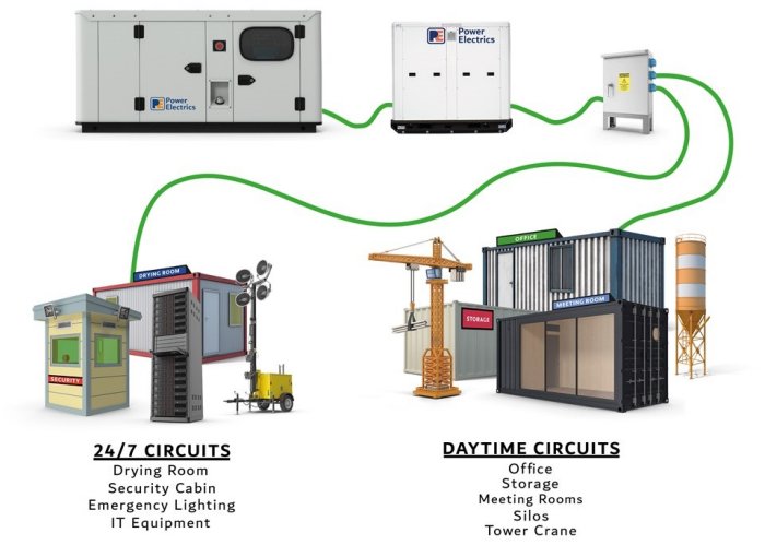 Many applications, particularly those in the construction industry, have varying power requirements, commitments to reduce environmental impact, and noise restrictions. During the day, whilst the site is operating and functioning, the supply/load required is hugely different to that outside of the normal operating hours. During the quieter hours, with welfare facilities infrequently used, and plant operators finished for the day, it makes sense the power requirement reduces compared with the day.