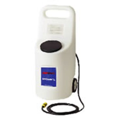10 Gallon capacity polypropylene tank with on/off switch and power indicator located on front of unit. Two-wheel configuration makes for easy maneuverability up stairs and ramps. Built-in 12-volt, sealed rechargable battery. Battery charger plugs into 110/120 VAC wall outlet. Charger shuts off automatically when battery reaches full charge. Watering gun Included.
