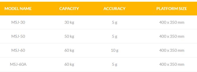 High resolution upto 60000 counts. Advance microprocessor based design. Easy to read bright red LED Display. Fast weighing response time. Pole display available for customer viewing. Attractive front, pole and top plate stickers. Heavy duty strong mild steel body. Best quality Powder coating. Rust proof stainless steel platter. Elegant stainless steel backrail. Built in rechargeable battery for continues use. Battery backup 25 hours. Low battery indicator.