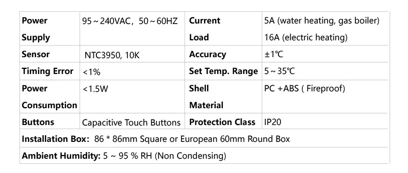 Beris - Model BT12-WF-HT -Home Heating Climate Controller Smart Thermostat