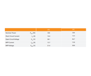 The module is available in two sizes: a 108-cell version with the power class (BDO) 430 W, and a 132-cell version with the power class (BBO) 530 W.