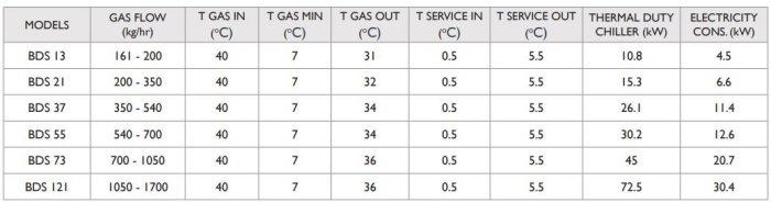 A heat recovery step can be included as a standard option thus reducing energy costs up to 20%, Cold gas at 5o C is used to precool the incoming gas at 40o C, whilst raising the temperature of the dehumidified gas to approximately 36o C before use. A chiller is included to provide the energy required for the process.