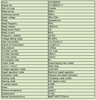 Chaiwei - Model CW-500GFZ -Biogas Generator Set