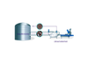 The drawing shows the simple and therefore error-free structure of DesiUS. The plant consists of a macerator, a screw pump, in this case two ultrasonic reactors, flow quantity measurement devices, and pressure and temperature sensors (two each). The control cabinet with the PLC control system may be installed in a remote location, or directly on the plant.