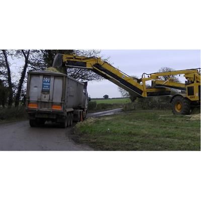 With the ROPA NawaRo-Maus efficiency in the logistics of biomass plants can be significantly increased. Chopped goods such as maize silage, whole-corn silage (or wood chips) are gathered up from the clamp at the edge of the field and loaded on to large lorries. The load capacity of the euro-NawaRoMaus is around 10 to 15 m³ per minute; the intake width is currently 8 m. A significant advantage of the design is that the chopper chain in the field is separated from the logistics on the road.