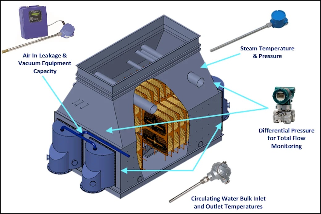 A complete system will provide data used to derive information for quantifying specific degradation mechanisms such as microfouling, macrofouling, cooling water flow, waterbox fill, air binding, low vacuum equipment capacity and condensate inundation. In essence, this system puts a microscope on your condensing heat exchanger and empowers engineers with direct measurements to identify issues outside of the normal function of condenser maintenance, enabling them to organize actionable effort.