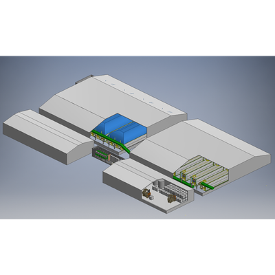 Centralized biowaste handling complex. Custom build using compact and industrial plant modules. Multiple biowaste type preparation, fermentation and variable product handling.