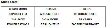 Make your installation chic but powerful in field. Made of hand-picked solar materials and components, and through superior manufacturing technology, this full-black mono crystalline solar panel offers high conversion efficiency up to 16.00%. The high power outputs, together with an elegant appearance make it ideal for roof-top installation on commercial or public buildings.