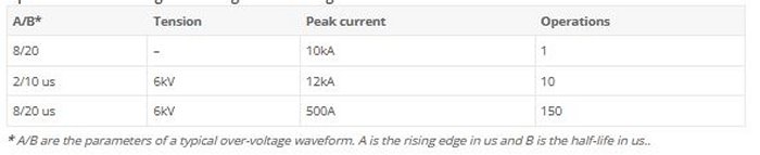 Blitz-Wall has GDT arresters according to the redundancy principle. Consequently it will have a life expressed in quantity of cycles higher than that of the single trap. The table below shows the number of operations that each GDT discharger can perform, depending on the intensity of the discharge.