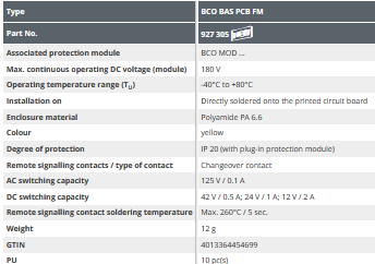 Two-pole arrester base for installation on printed circuit boards by means of soldering process for BLITZDUCTORconnect modules. With integrated remote signalling contact (floating changeover contact) for the condition monitoring of the protection modules.