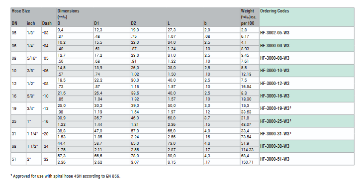 braided hose Non-Skive swage ferrule 1SN,2SN,2SC,2SN-K DN 10. Maximum working pressures depending on the type of the hose connector and the hose type.