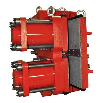 The Hilliard M900SH brake caliper is a floating spring applied, hydraulically released brake for use in heavy duty industrial applications. The brake caliper is suitable for outdoor applications and has been designed for use in many different extreme environments. The M900SH is capable of producing 170,000 LBF (750 kN) of braking force. The floating design can accommodate up to 1 inch of axial movement due to thermal expansion of large equipment such as grinding mills and kilns. The caliper features "Maintenance Mode" which removes all stored spring energy within the cylinder assembly. This allows for brake pad replacement, monitor unit adjustment and seal replacement without the need to remove the brake from service. Engineered fasteners eliminate the need for special tools such as torque multipliers or hydraulic tensioners.
