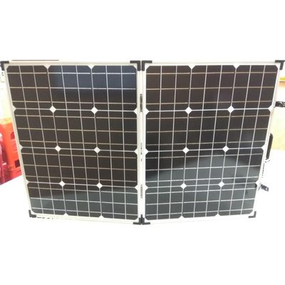 Maximum Power (Pmax): 100 W(±5%). Maximum Power Voltage (Vmp): 18 V(±5%). Maximum Power Current (Imp): 5.56 A(±5%). Folding size(L x W x H): 675 x 555 x 55mm.  Weight(kg): 8 kg.  Frame: Silver anodized Aluminum. Junction Box & Cable: IP67 J-Box;0.9m 4.0 mm2 Solar Cable;MC4 Connector.