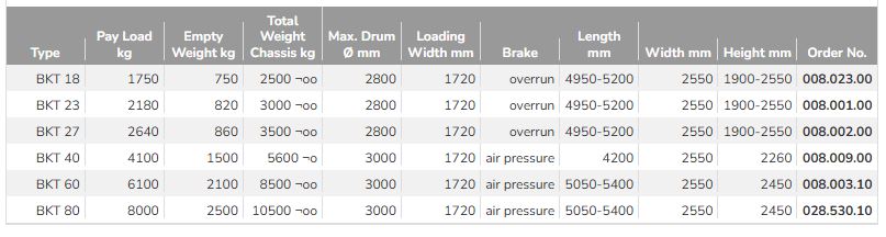 Bagela - Model BKT 18 up to BKT 80 -Cable Drum Trailers